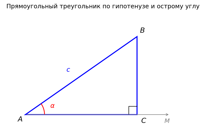 Следовательно, треугольник ABC — прямоугольный с гипотенузой AB = c и острым углом ∠ A = α, что и требовалось.