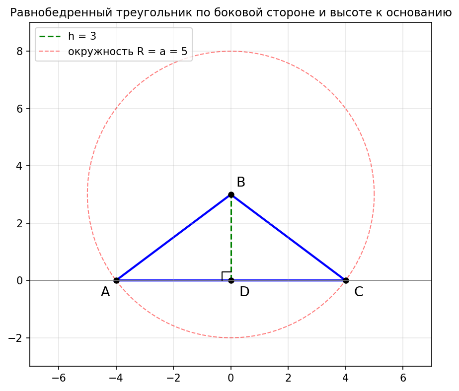 2) По боковой стороне и высоте, проведённой к основанию
