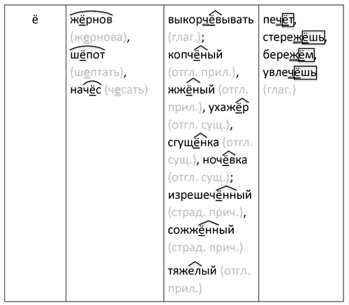 гласная ё после шипящих в суффиксах отглагольных слов,