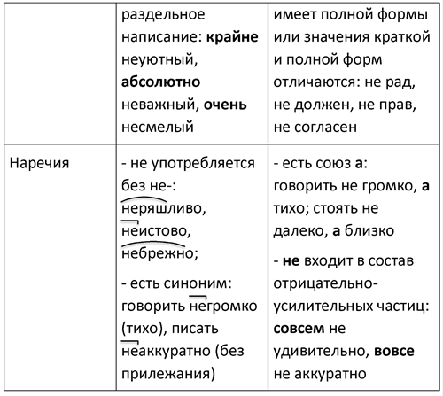 *Имена существительные, качественные прилагательные и образованные от них наречия на -о подчиняются одному правилу слитного и раздельного написания с НЕ.