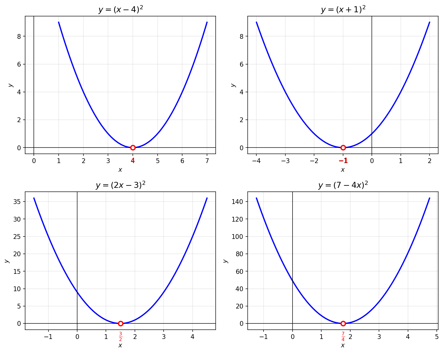 Квадрат любого выражения неотрицателен и равен нулю только тогда, когда само выражение равно нулю. Поэтому каждое из неравенств выполняется при всех , кроме того значения, при котором выражение в скобках обращается в нуль.
