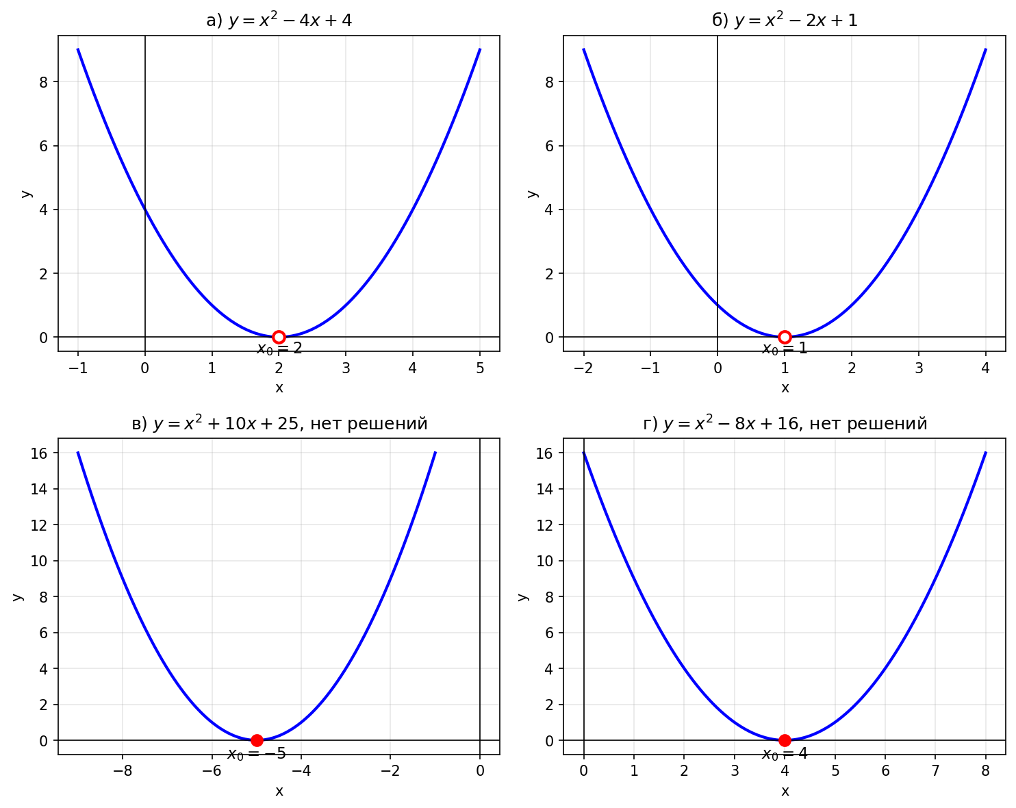 г) $x^2 - 8x + 16 < 0$.