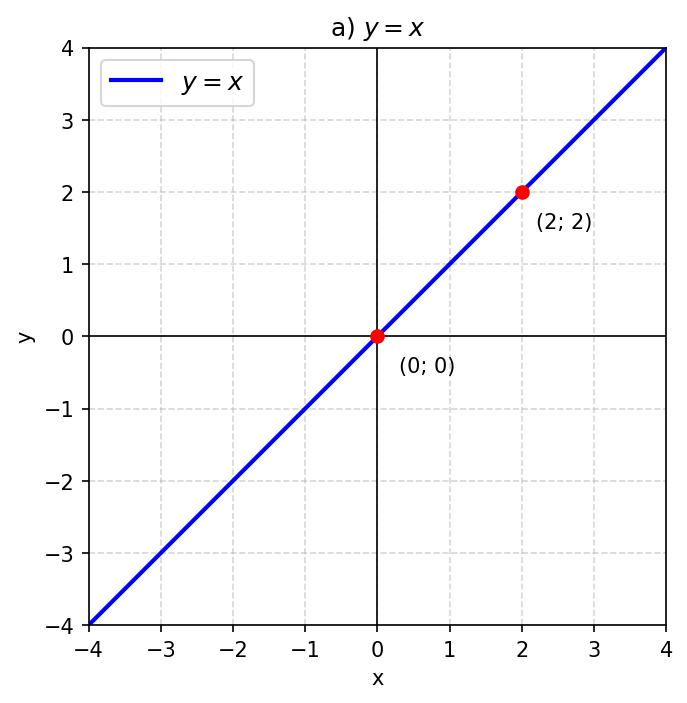 Каждый график — прямая линия, построенная по двум точкам. Графики наглядно показывают, как угловой коэффициент влияет на наклон прямой: при