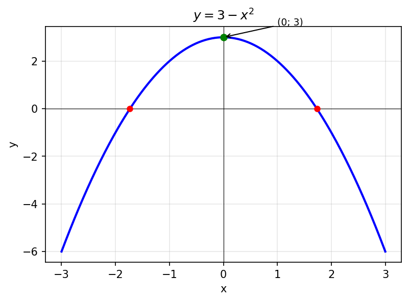 б) $y = 3 - x^2$;