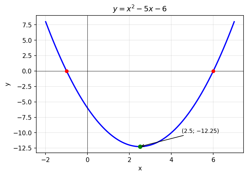 в) $y = x^2 - 5x - 6$;