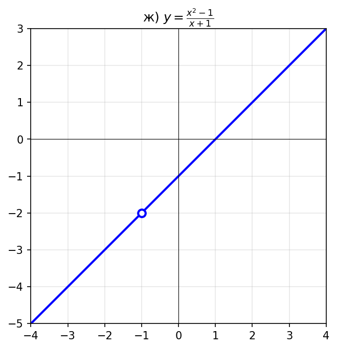 ж) $y = \dfrac{x^2-1}{x+1}$.