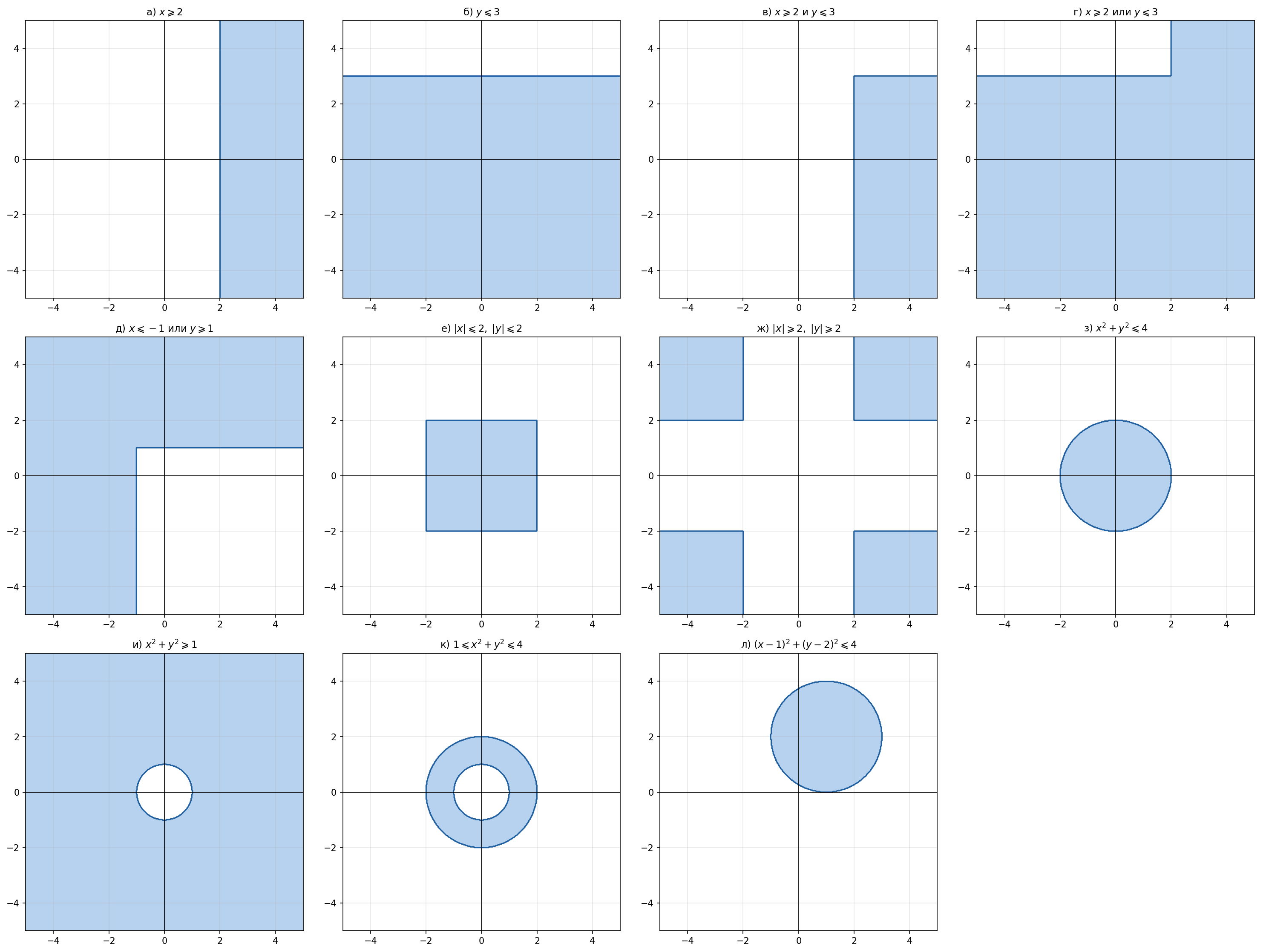 з) — круг с центром в начале координат радиуса 2 (включая границу).