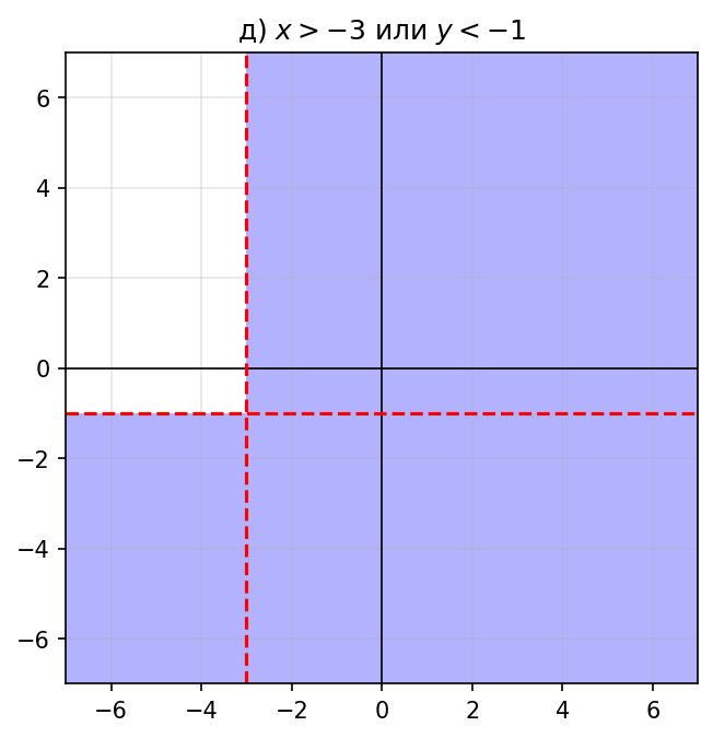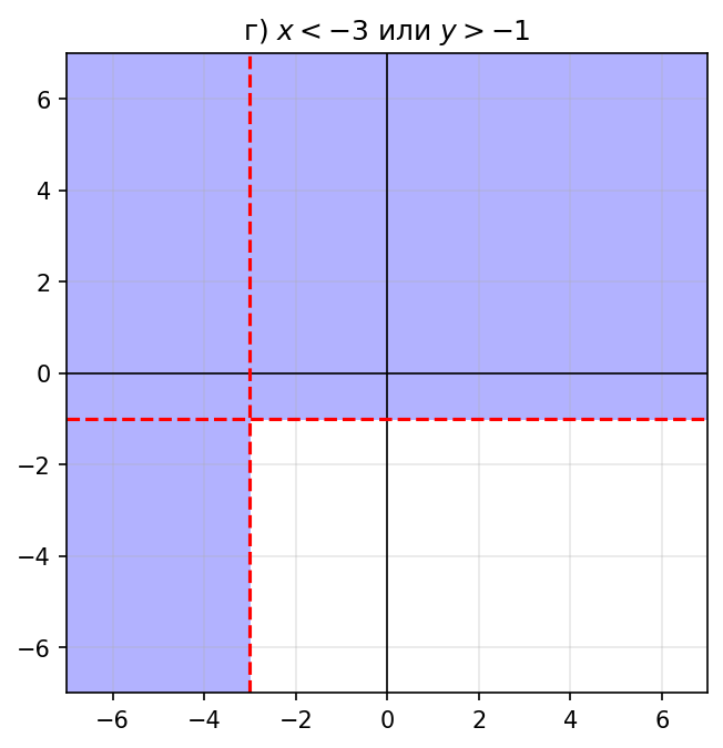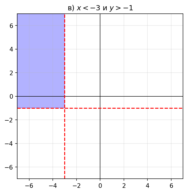 — пересечение областей из а) и б), т.е. левый верхний «угол» (левее