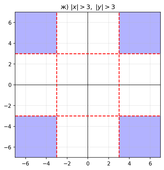 Задача требует отметить штриховкой области на координатной плоскости. Построим графики для каждого пункта.