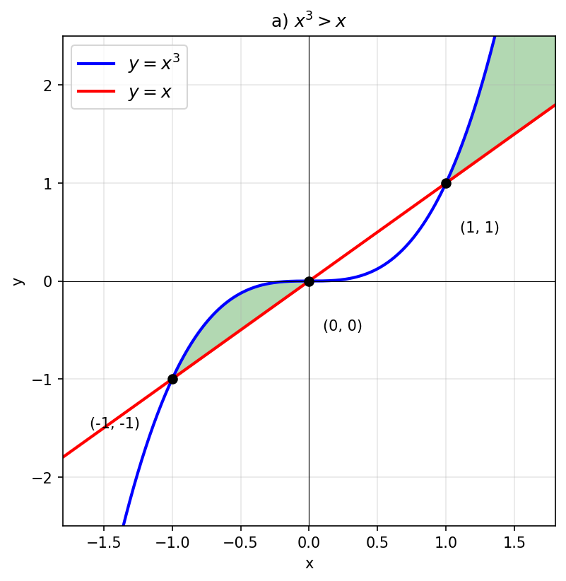По графику: там, где кубическая парабола выше прямой.