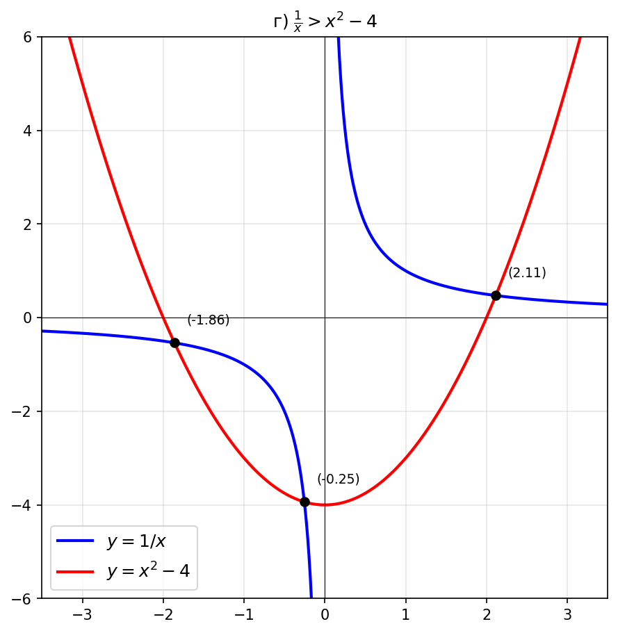 Итого, прямая выше гиперболы: — нет, проверим внимательнее.