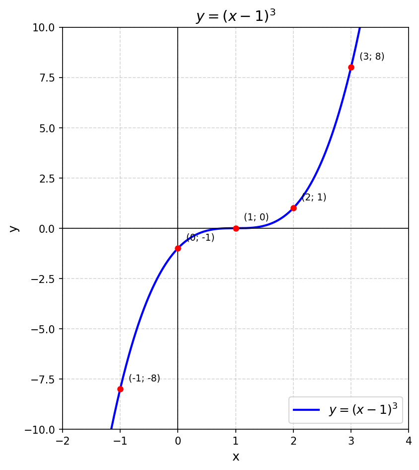 Условие: Постройте график функции $y = (x - 1)^3$.