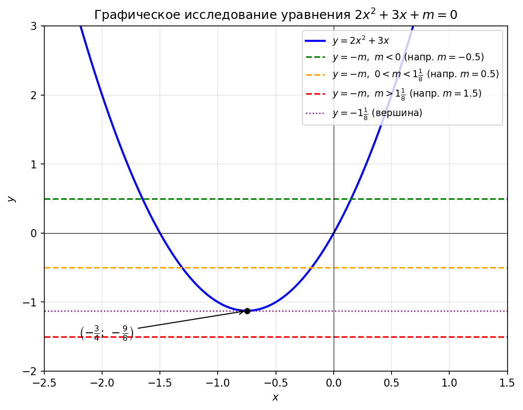 Корни уравнения — абсциссы точек пересечения параболы с прямой