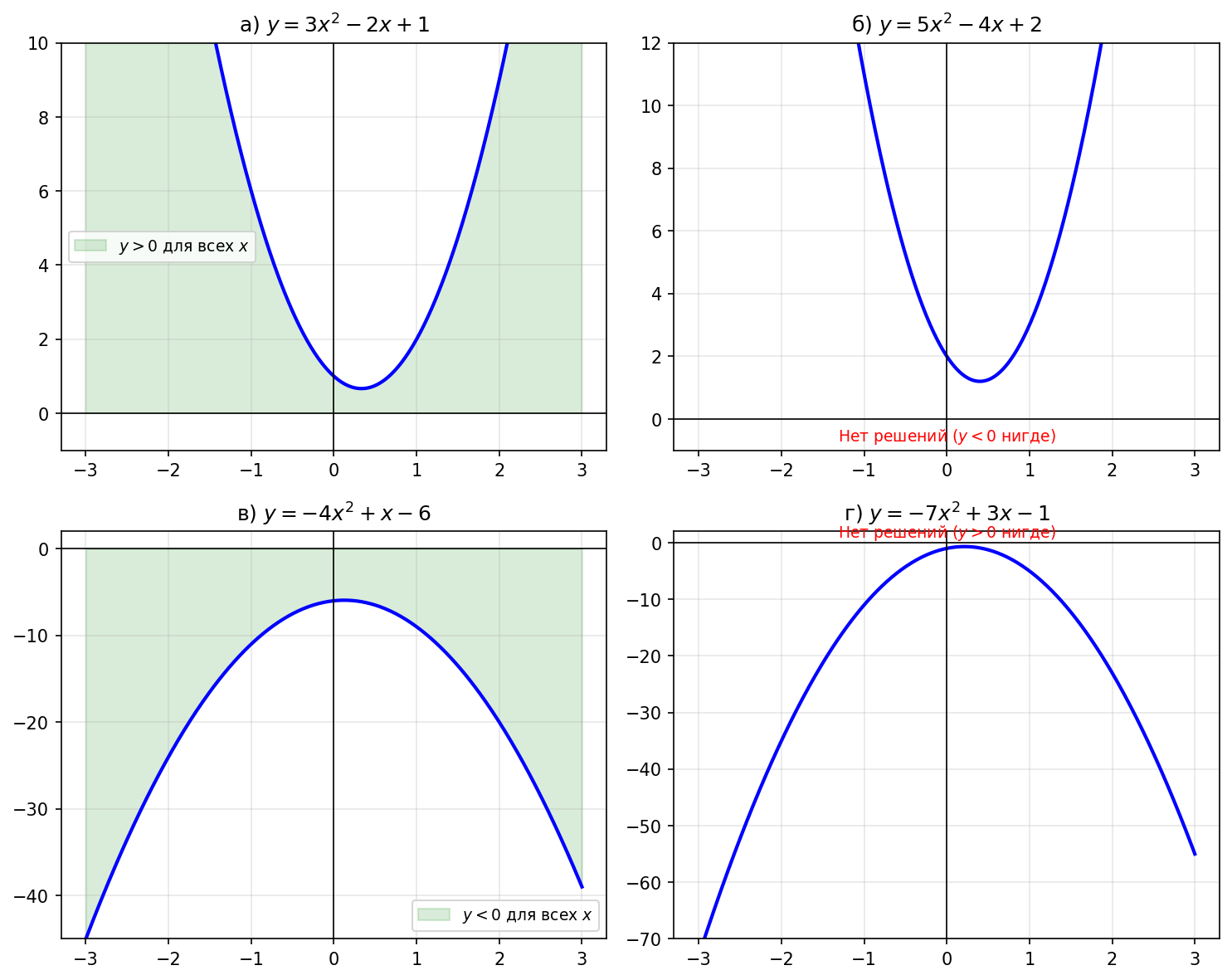 г) $-7x^2 + 3x - 1 > 0$.