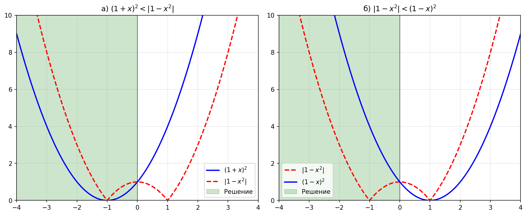 Условие: а) $(1 + x)^2 < |1 - x^2|$;