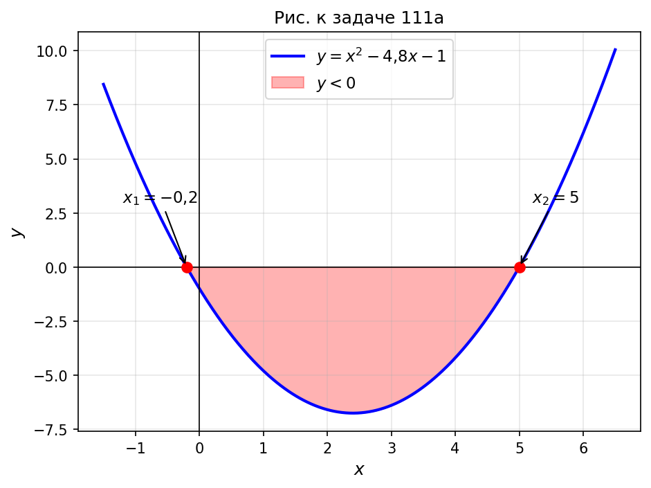 Условие: а) $x^2 - 4{,}8x - 1 < 0$;