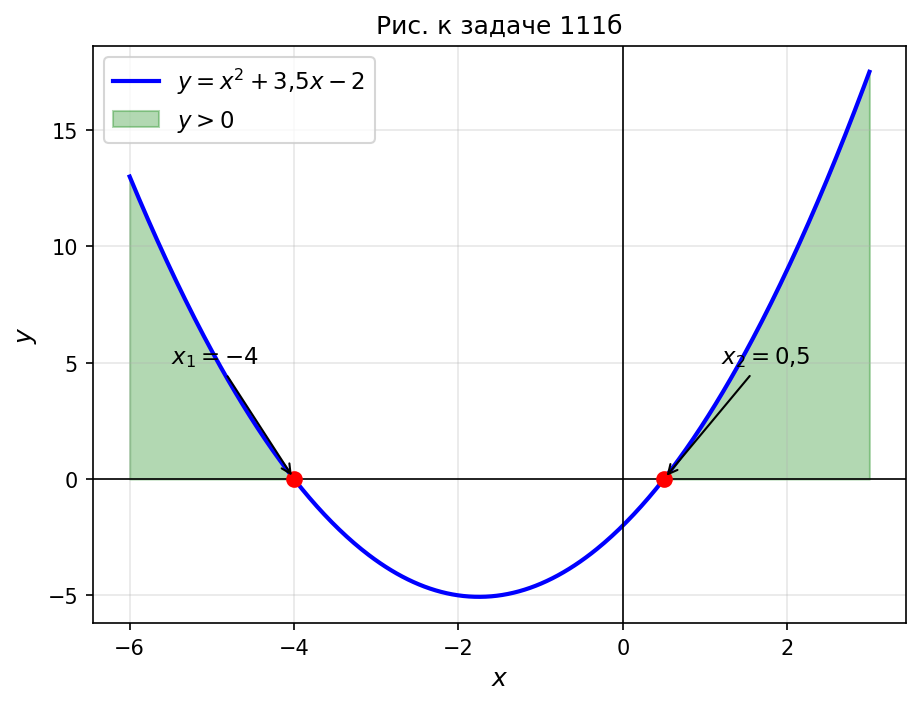 б) $x^2 + 3{,}5x - 2 > 0$.