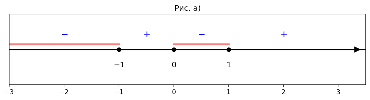 . Отметим их на оси и расставим знаки справа налево, начиная с «
