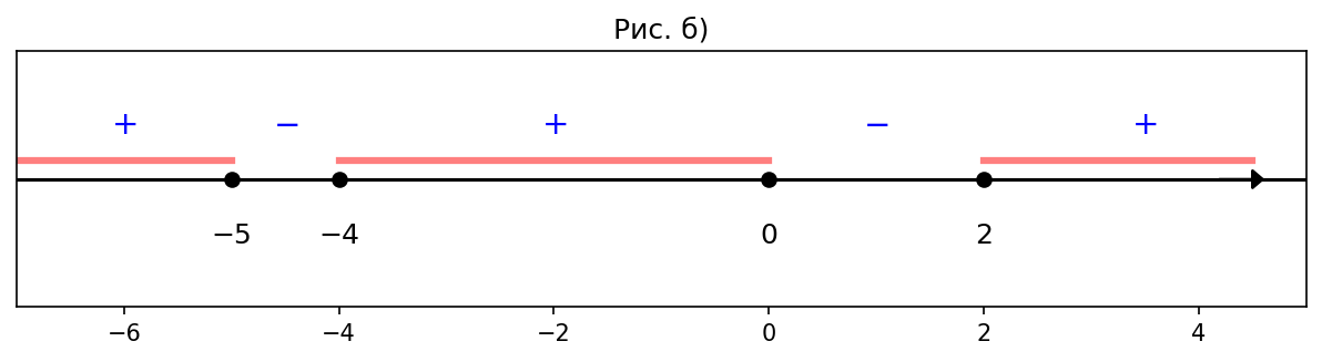 а) $(x^2 + x)(5x - 5) < 0$; б) $(3x + 12)(2x + 10)(x^2 - 2x) > 0$;