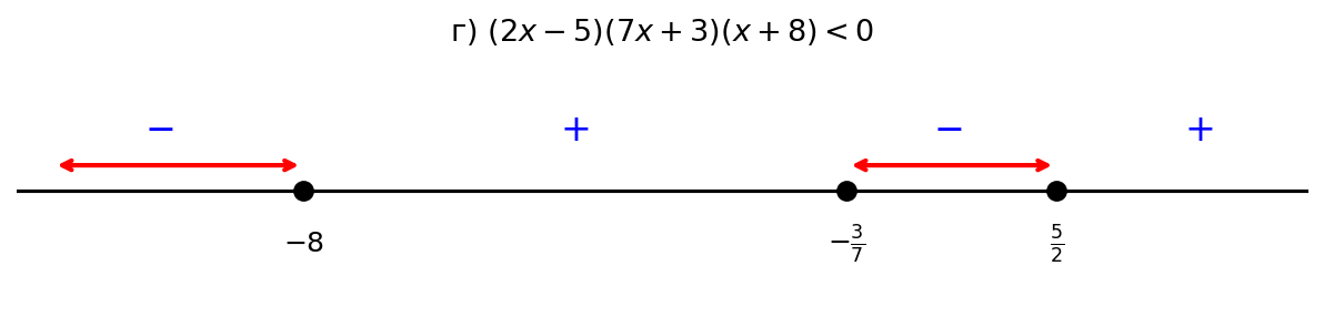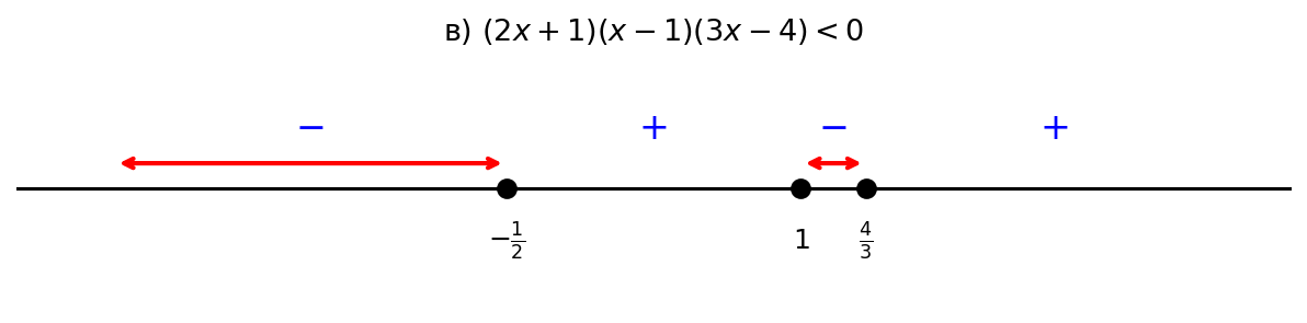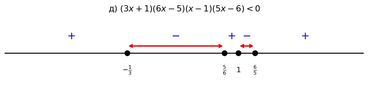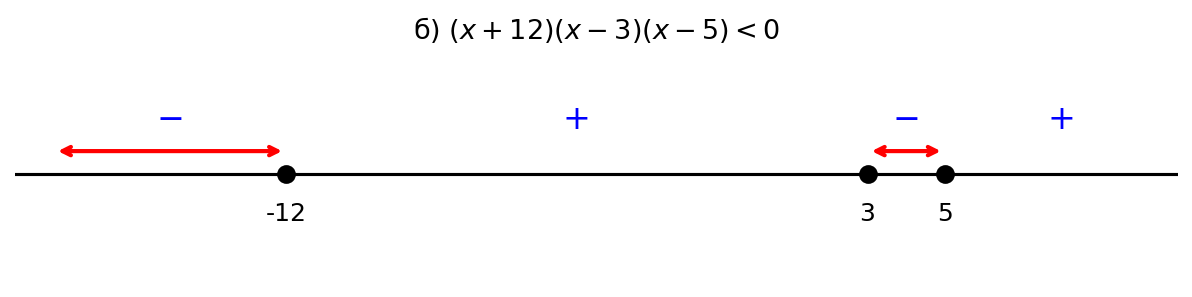 Все множители имеют положительные старшие коэффициенты, поэтому произведение при положительно. Расставляем знаки: