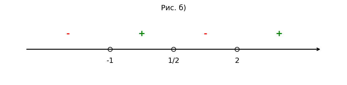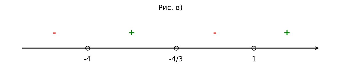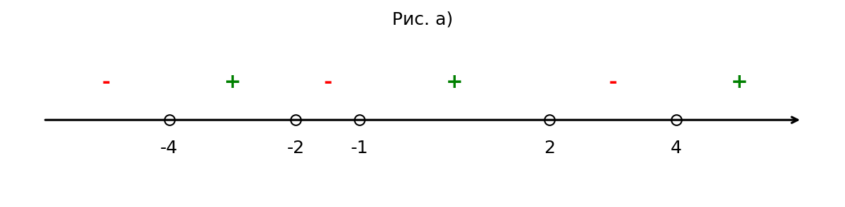 Все двучлены в первой степени, поэтому применяем метод интервалов: справа от наибольшего корня ставим «», далее знаки чередуются.