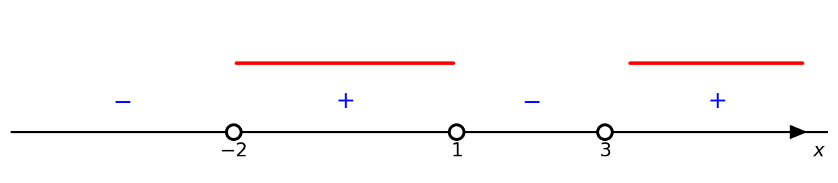 а) $\dfrac{(x-1)(x+2)}{x-3} > 0$;