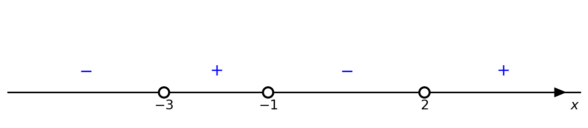 б) $\dfrac{(x+1)(x-2)}{x+3} < 0$;