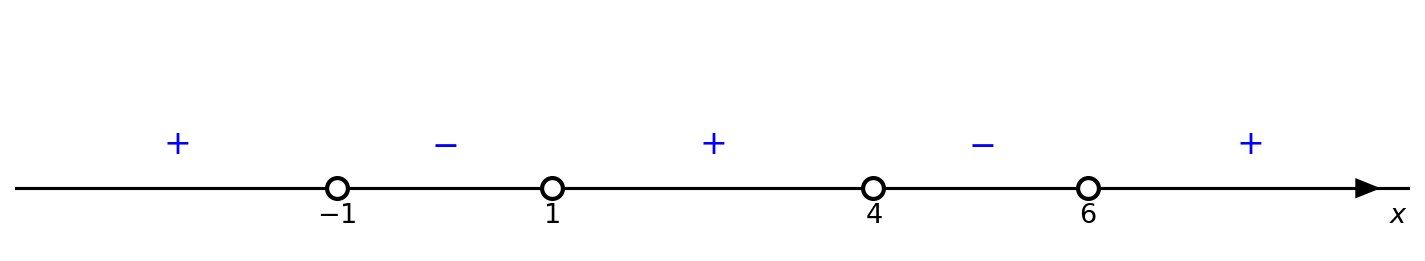 г) $\dfrac{(x-6)(4-x)}{(x-1)(1+x)} > 0$.