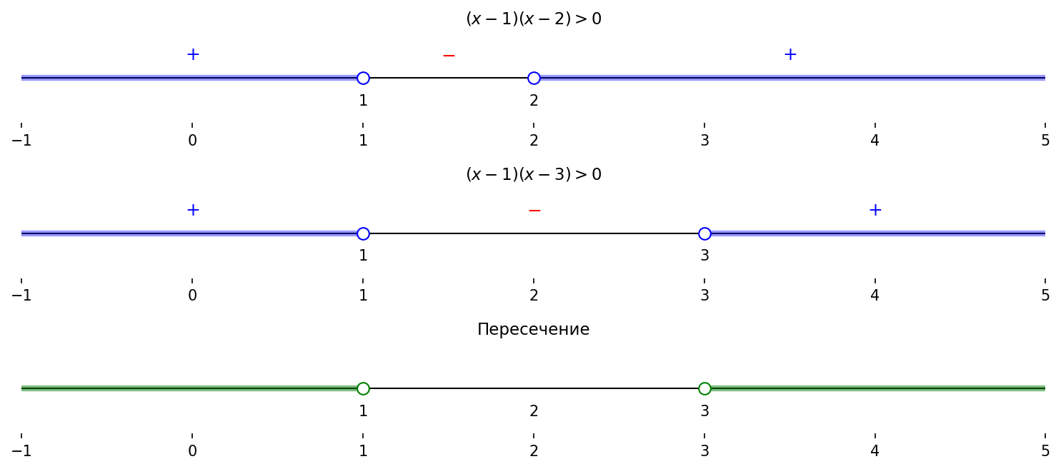 а) $\begin{cases} (x-1)(x-2) > 0, \\ (x-1)(x-3) > 0; \end{cases}$
