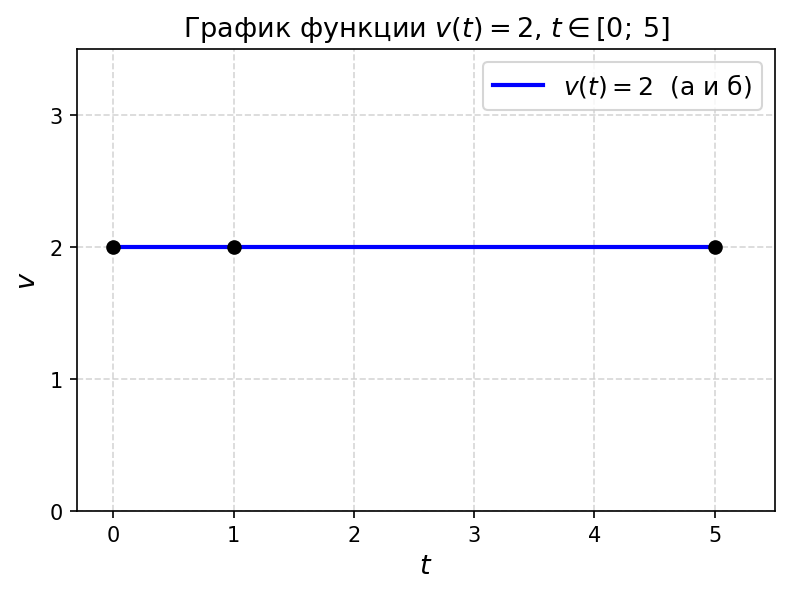 Выразите $v$ как функцию $t$ и постройте график этой функции, если $t \in [0; 5]$.
