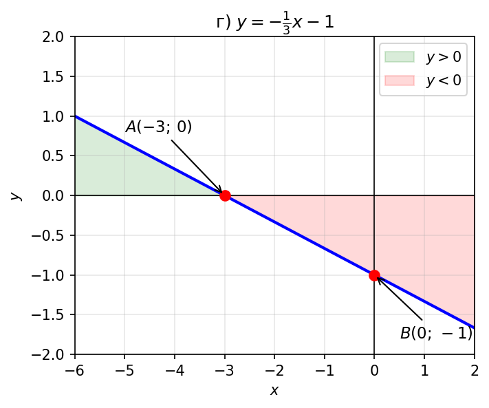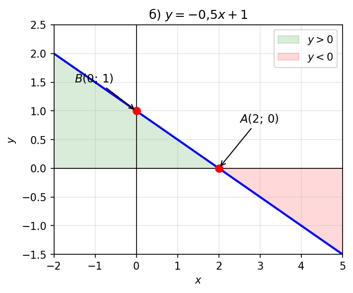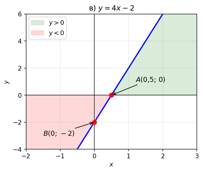 Функция принимает положительные значения там, где график расположен выше оси , и отрицательные — где ниже оси