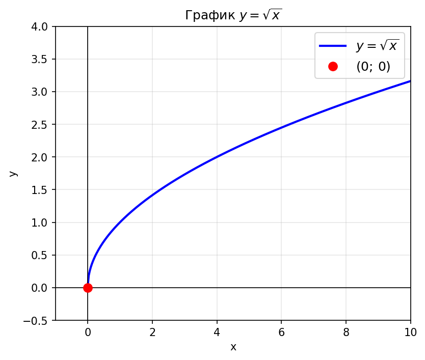 2) Укажите точки пересечения графика функции $y = \sqrt{x}$ с осями координат.