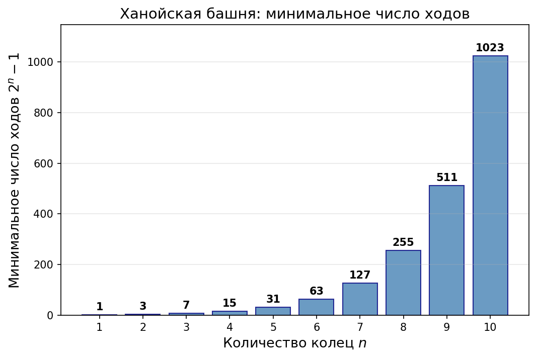 колец нужно перенести на целевой штырёк — это снова требует не менее