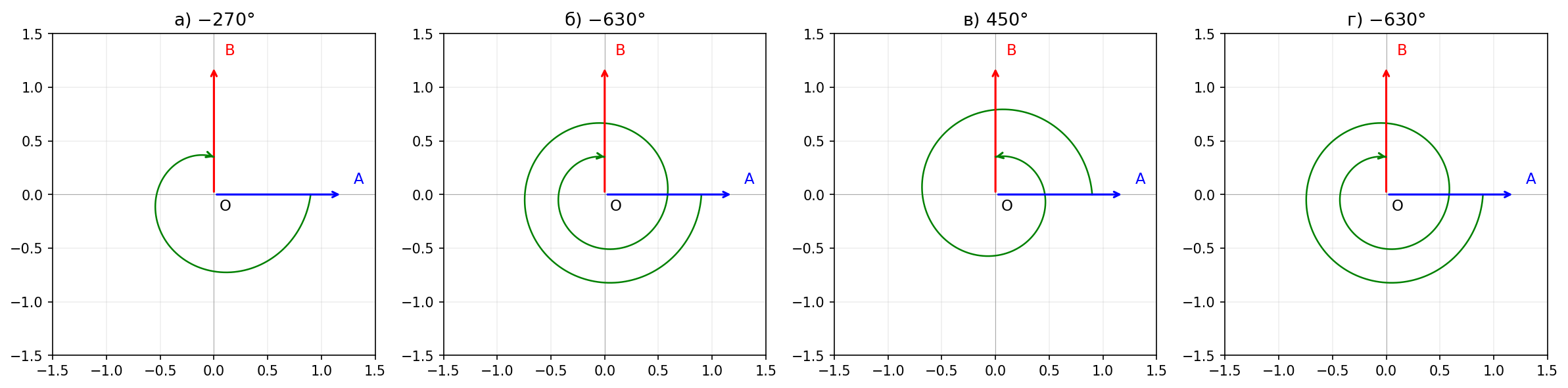 От правого направления до нижнего по часовой стрелке — это полного оборота в отрицательном направлении: