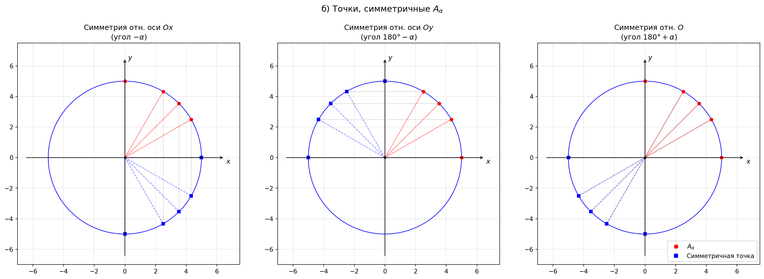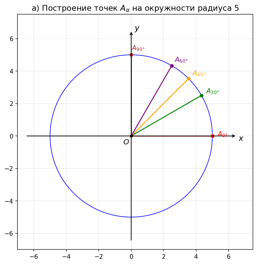 Строим окружность радиуса 5 см с центром в начале координат. Точка