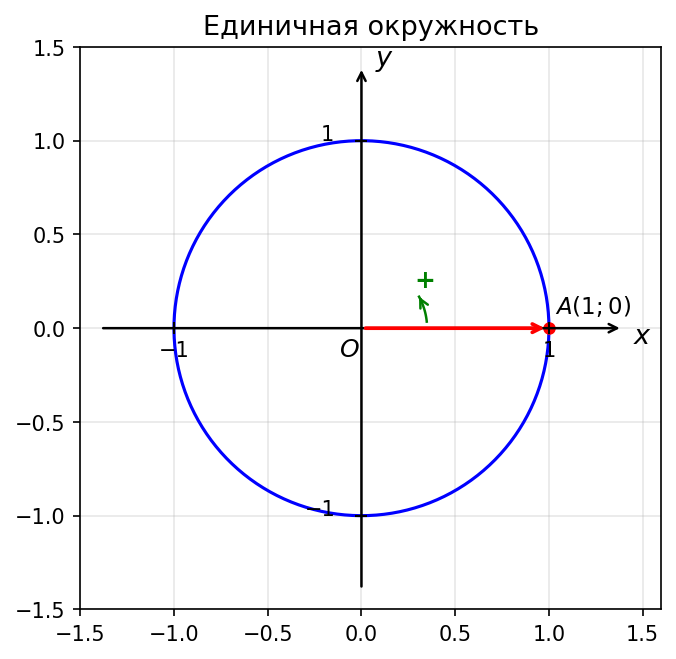 а) Единичная окружность — это окружность радиуса 1 с центром в начале координат .