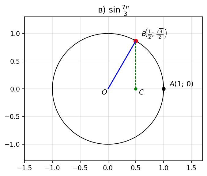 в) $\sin \dfrac{7\pi}{3}$;