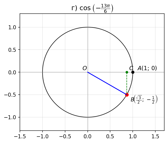 г) $\cos\left(-\dfrac{13\pi}{6}\right)$.