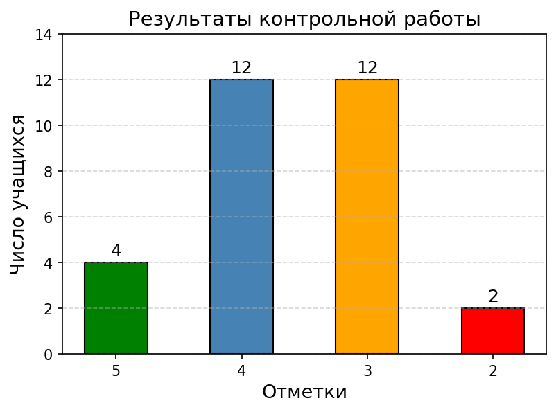 Условие: В таблице приведены результаты контрольной работы по математике одного класса.