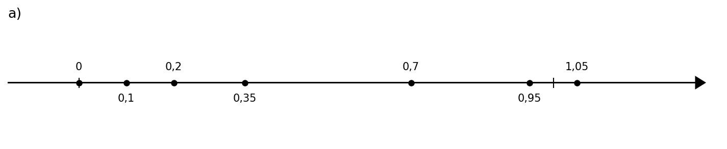 а) 0; 0,1; 0,2; 0,35; 0,7; 0,95; 1,05;