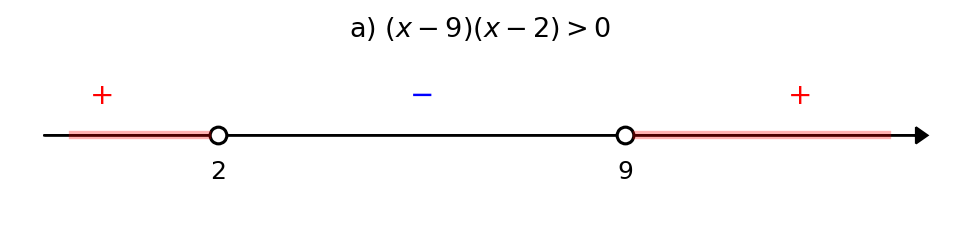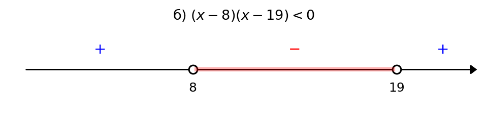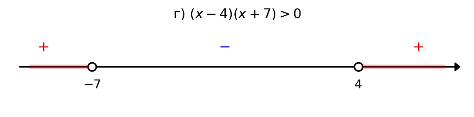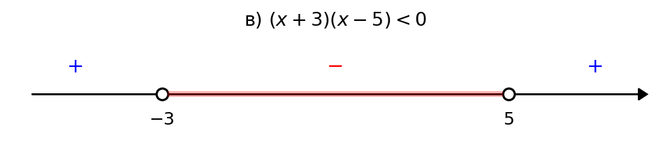 . Отметим их на координатной оси и определим знак произведения на каждом интервале: