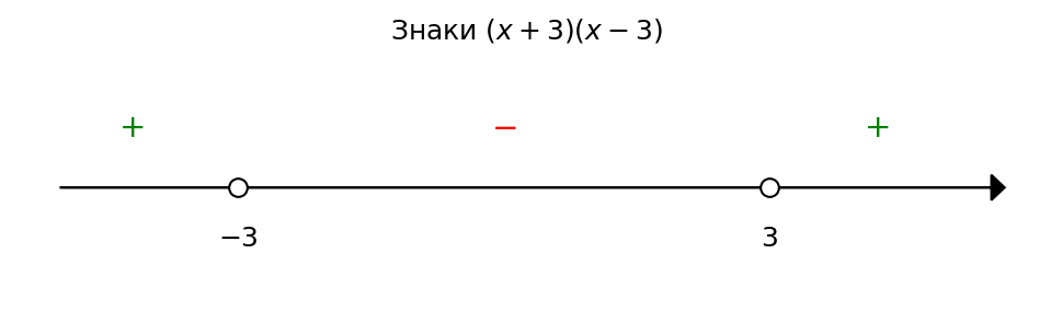 б) $x^2 - 9 < 0$;