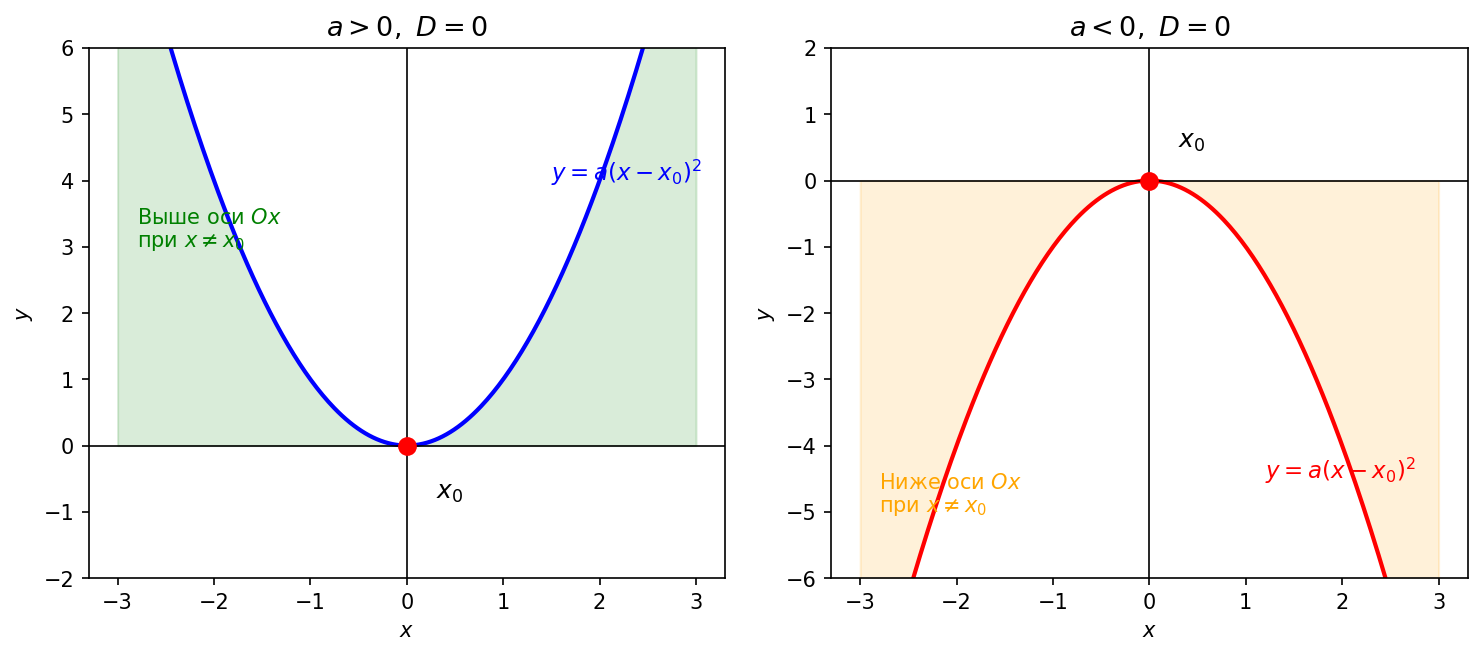 Неравенство второй степени с дискриминантом, равным нулю, может как иметь, так и не иметь решений. Рассмотрим все возможные случаи.